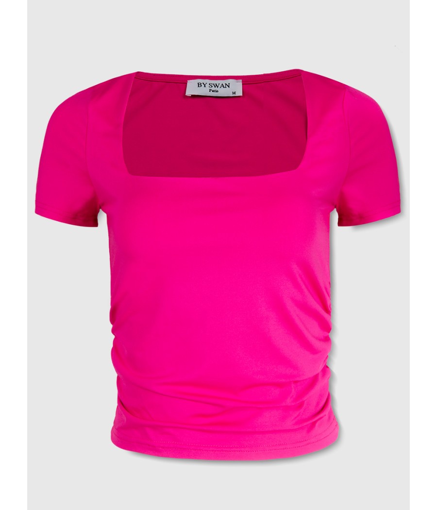 Matière stretch, encolure carrée, couleur unie, froncé au bas sur les cotés